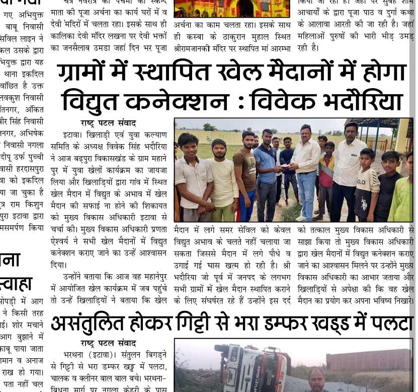 खिलाडी एवम युवा कल्याण समिति के प्रदेश अध्यक्ष विवेक भदौरिया ने इटावा जनपद के ग्राम बढ़पुरा जाकर गांव के प्रधान को खेल मैदान बनवाने पर सम्मानित किया ।और गांव के बच्चों को खेल सामग्री वितरित की।...और पढ़ें